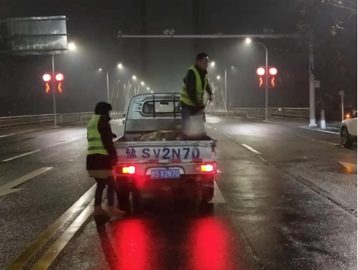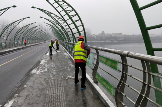 1月23日晚上9點(diǎn)至24日顛倒凌晨5點(diǎn),申飛建工出動(dòng)撒鹽車2部,人員15人,對(duì)民橋、四一路立交橋、申橋、西關(guān)橋、二號(hào)橋、茶橋拋撒融雪劑1.5噸,并組織人員對(duì)人行道進(jìn)行了清雪工作。確保市區(qū)車輛、市民清早安全通行。